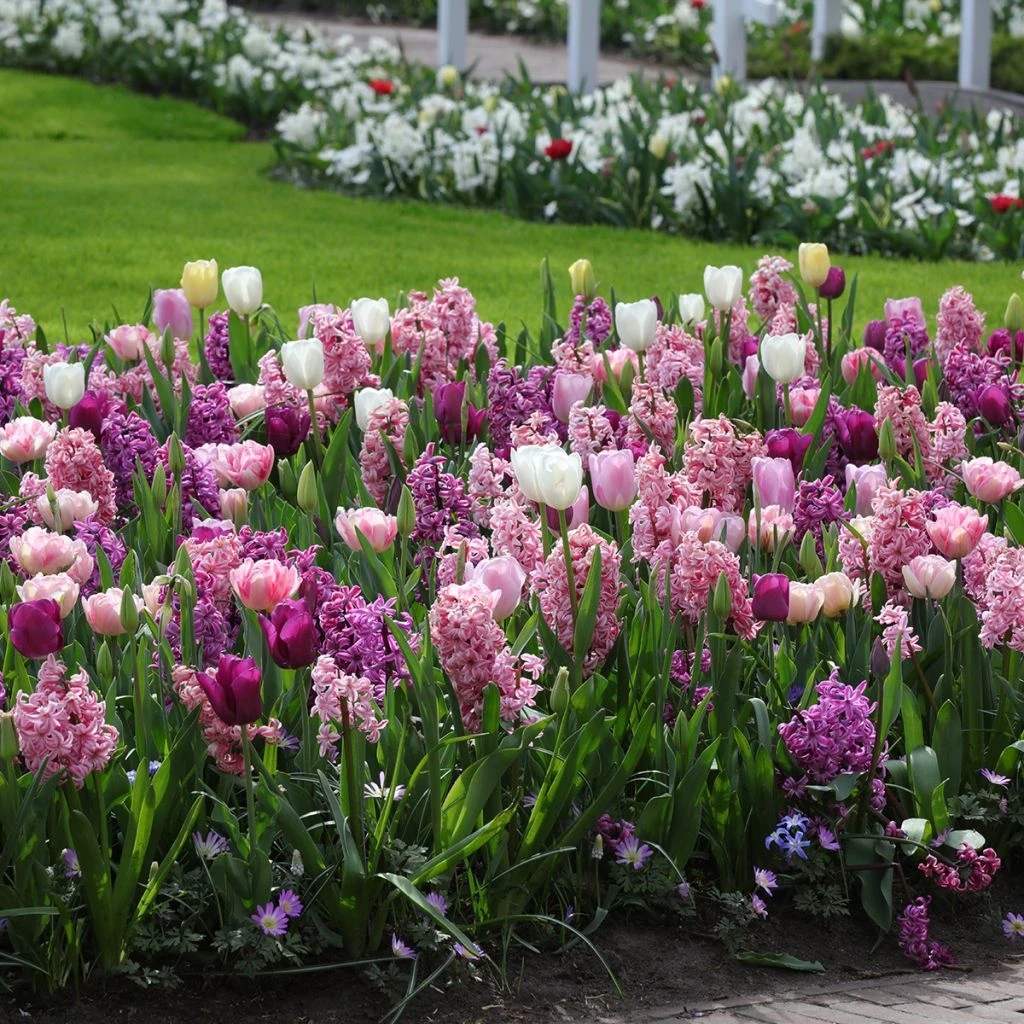 Avec cette collection de bulbes, c’est le romantisme qui triomphe au jardin ! C’est une très belle ambiance, romantique sans être mièvre, où les tons roses se révèlent dans toute leur beauté, magnifiés par le blanc et sublimés par le pourpre, le violacé. Sous le soleil printanier s’épanouit un charmant camaïeu, un tableau harmonieux. Les tulipes offrent de la hauteur à la scène et l’élégance de leurs coupes irisées, tandis que les jacinthes apportent avec leurs généreux épis floraux la densité et le parfum. L’ensemble permet de composer sans difficulté un tableau inoubliable pour fêter en beauté l’arrivée du printemps. Sublime avec des .