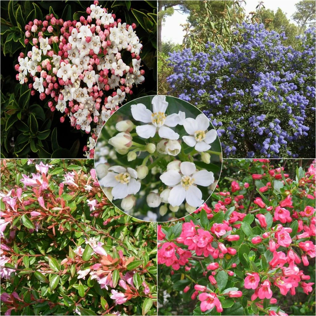 Nous vous proposons un kit de 5 variétés d’arbustes persistants à floraisons échelonnées, de taille moyenne, faciles de culture et d’entretien, tolérant bien les sols secs en été. Livrés en kit de 10 plants en pots (2 plants de chaque variété), ils sont parfaits pour créer un écran fleuri une bonne partie de l’année, tout en protégeant votre jardin du vent et des regards, même en hiver. Ce kit d’arbustes en godets permet d’aménager environ 10 m de haie à moindre coût.